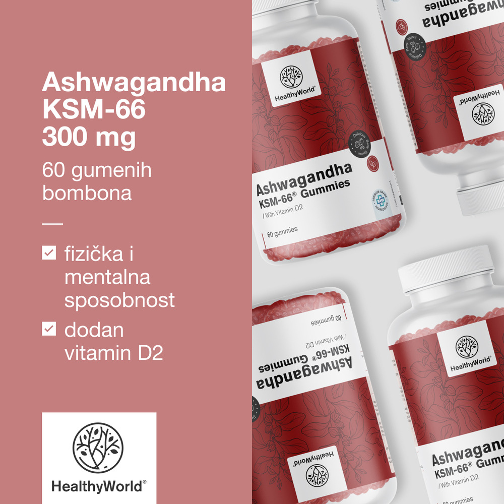 Prednosti gumenih bombona Ashwagandha KSM-66 300 mg robne marke HealthyWorld: