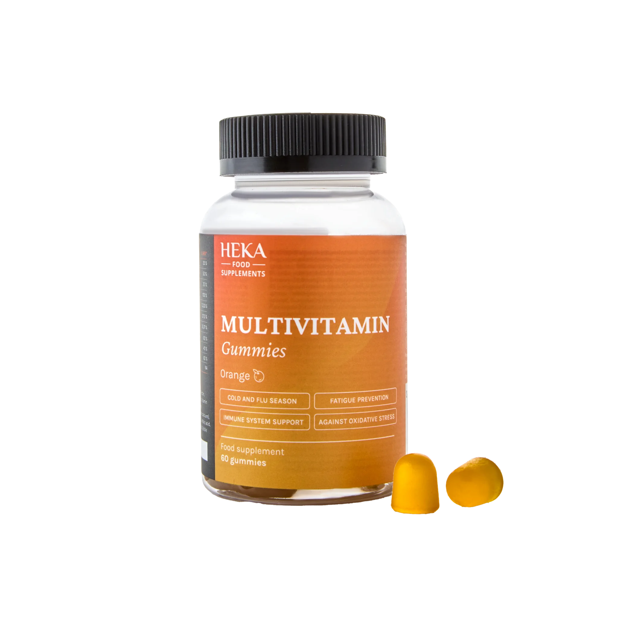 Zaslađivači (maltitol sirup, maltitol, sorbitol sirup, izomalt), sredstvo za želiranje: pektin, vitamin C (L-askorbinska kiselina), vitamin A acetat, DL-alfa-tokoferil acetat, vitamin D3 (kolekalciferol), vitamin B12 (cijanokobalamin), vitamin B6 (piridoksin-hidrohlorid), folna kiselina, vitamin B7 (D-biotin), vitamin B5 (D-kalcij-pantotenat), kalij-jodid, inozitol, regulatori kiselosti (natrijev citrat, limunska kiselina, DL-jabučna kiselina), prirodni karoten, aroma, sredstva za poliranje (karnauba vosak i biljno ulje), jestivi rižin papir u prahu.